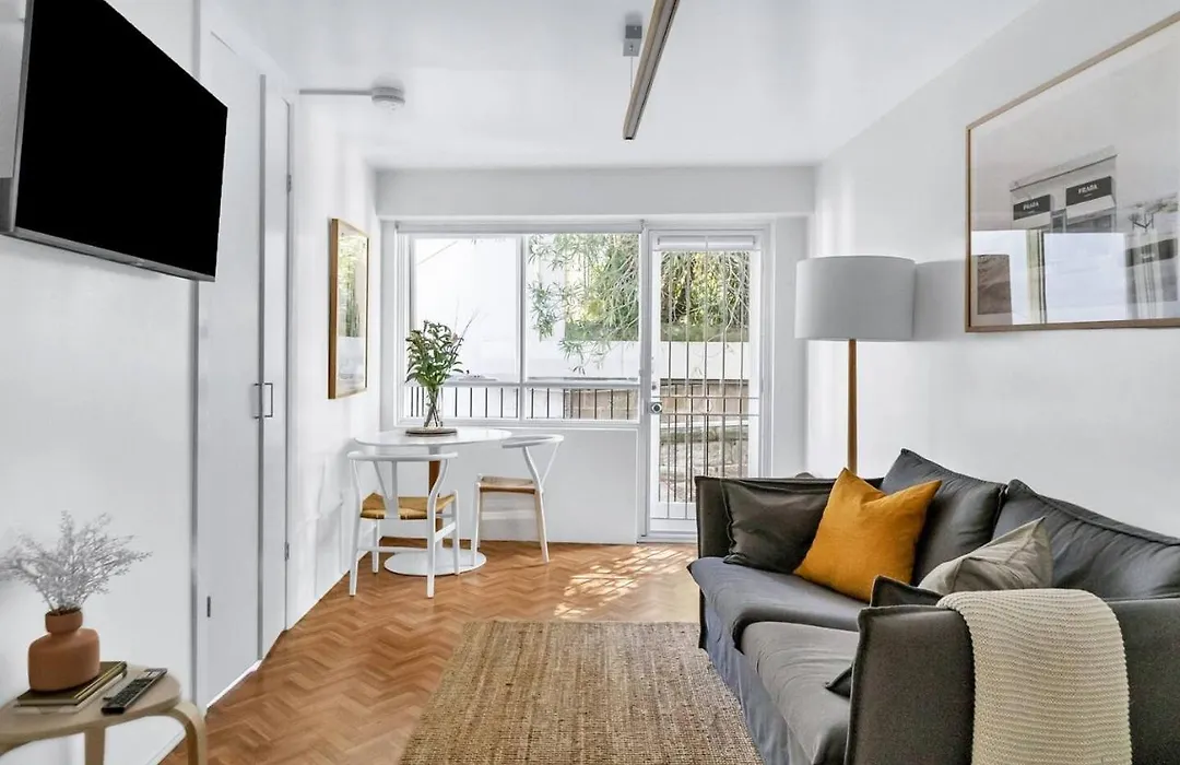 Le domicile de 32 m² est situé dans le quartier "Potts Point" à Cité de Sydney, juste à côté du Beare Park. Le Port de plaisance de Double Bay trouve à environ 2,1 km seuil de l'appartement. L'Opéra de Sydney est à 30 minutes de marche.
